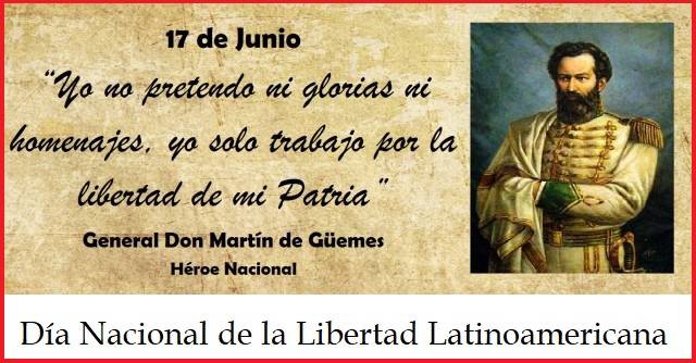 Desde 1999, la República Argentina estableció el Día Nacional de la Libertad Latinoamericana por virtud de la Ley 25.173, en conmemoración del fallecimiento del General Martín Miguel de Güemes.