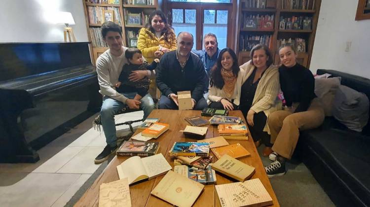 La historia de la repatriación empieza en 2019 en la provincia de Buenos Aires. Gastón, un técnico mecánico de maquinarias agrícolas, se topó con un container en una ruta en Chapadmalal que tenía muebles viejos, maderas y un montón de cajas de libros. Como su novia Celina es muy lectora, le consultó si los quería. Así fue como aquellas cajas con libros llegaron a la casa de la familia Brittez en Otamendi.