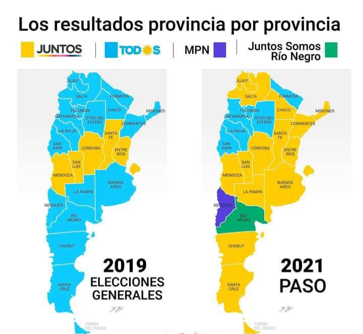 En tanto, la disputa en la provincia de Buenos Aires, la de mayor peso electoral del país con el 37 por ciento del padrón, le dio una ventaja de 5 puntos a Juntos sobre el FdT; mientras que en el tercer lugar, se ubicó el Frente de Izquierda; y en el cuarto puesto, Avanza Libertad.